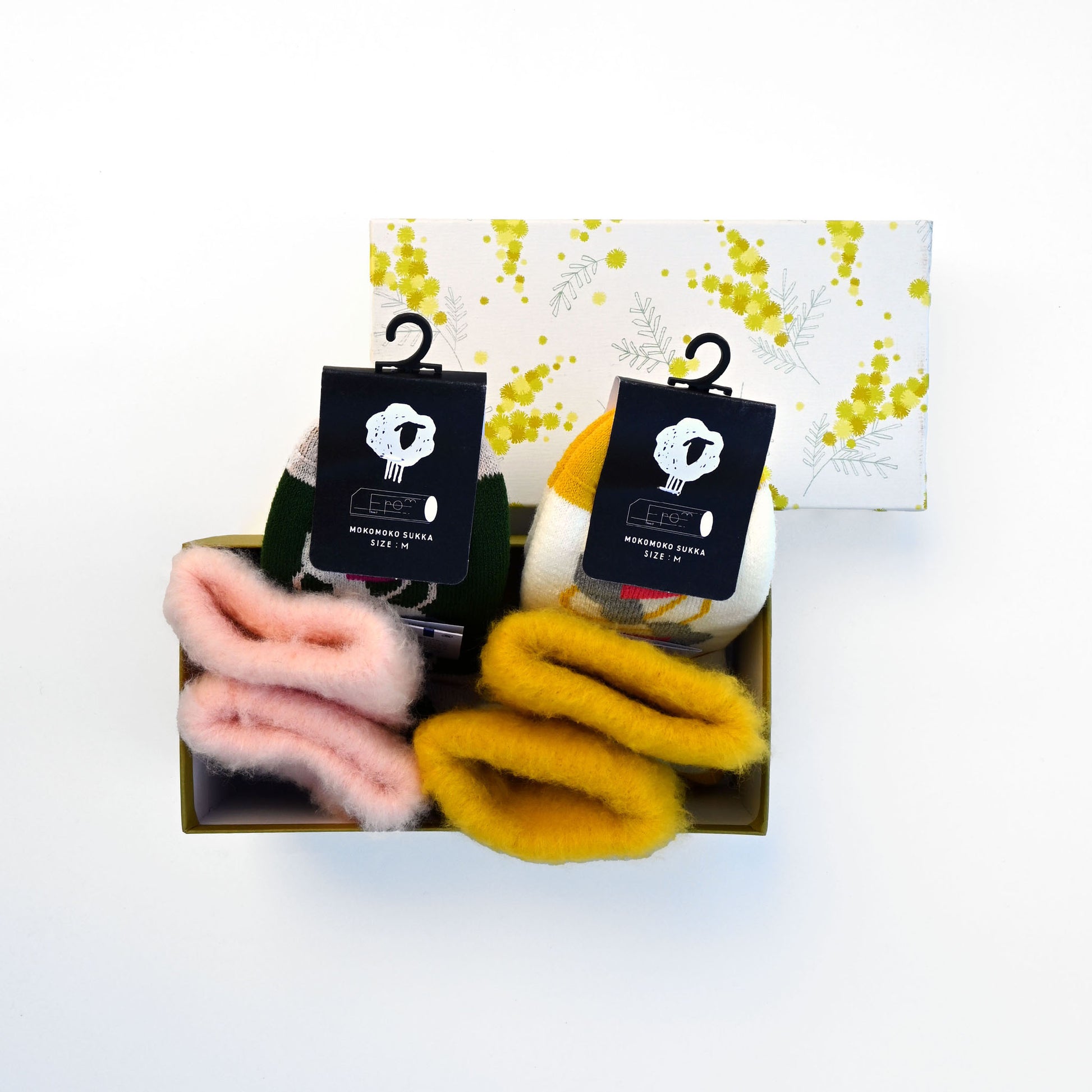 もこもこソックスの M サイズを、色違いで揃えたギフトセットです。