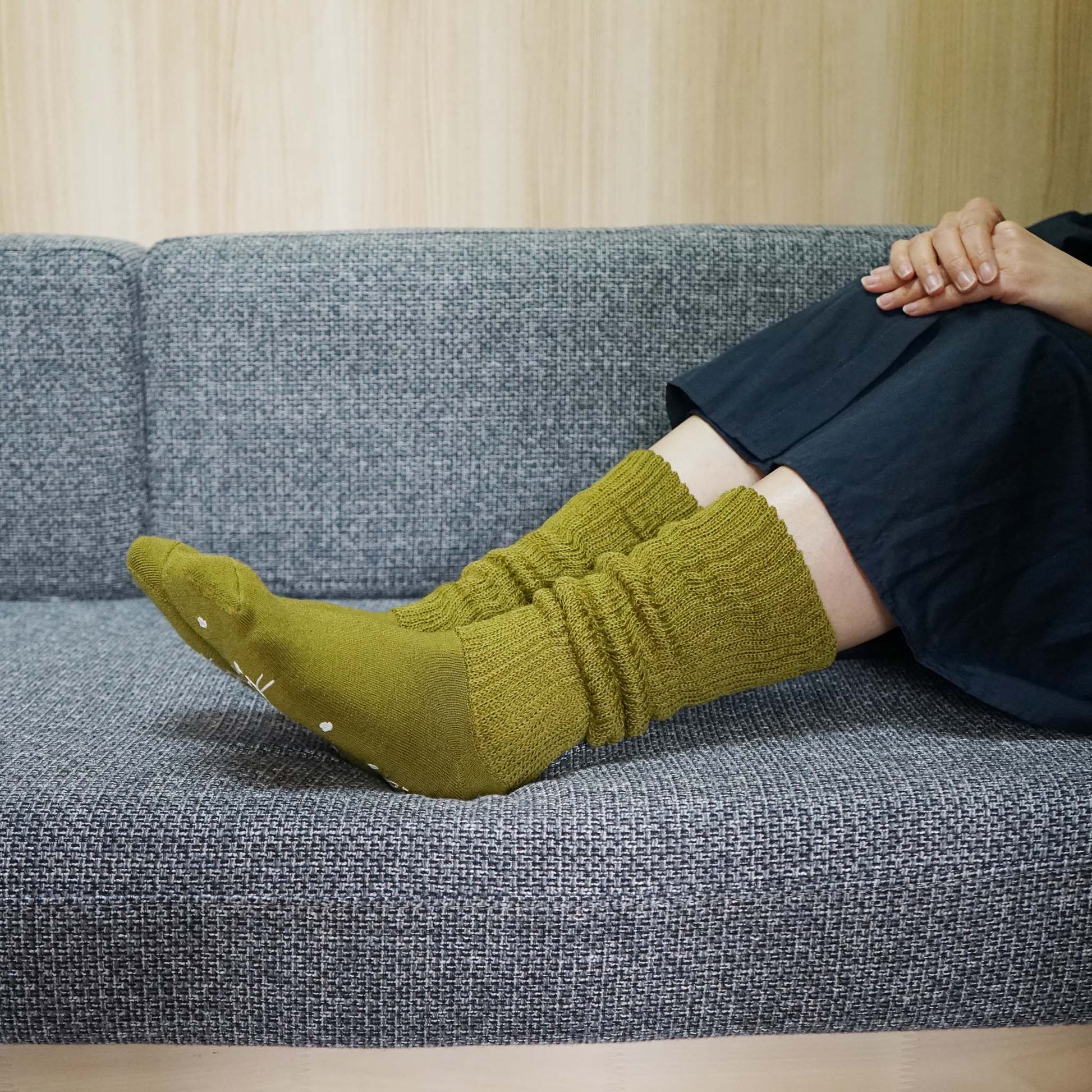 足首から上は2重編みで冬~春にかけての寒さをしっかりガードしてくれます。