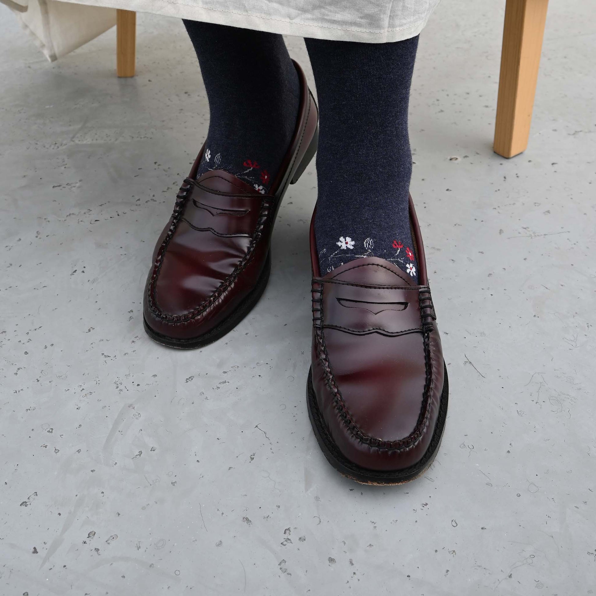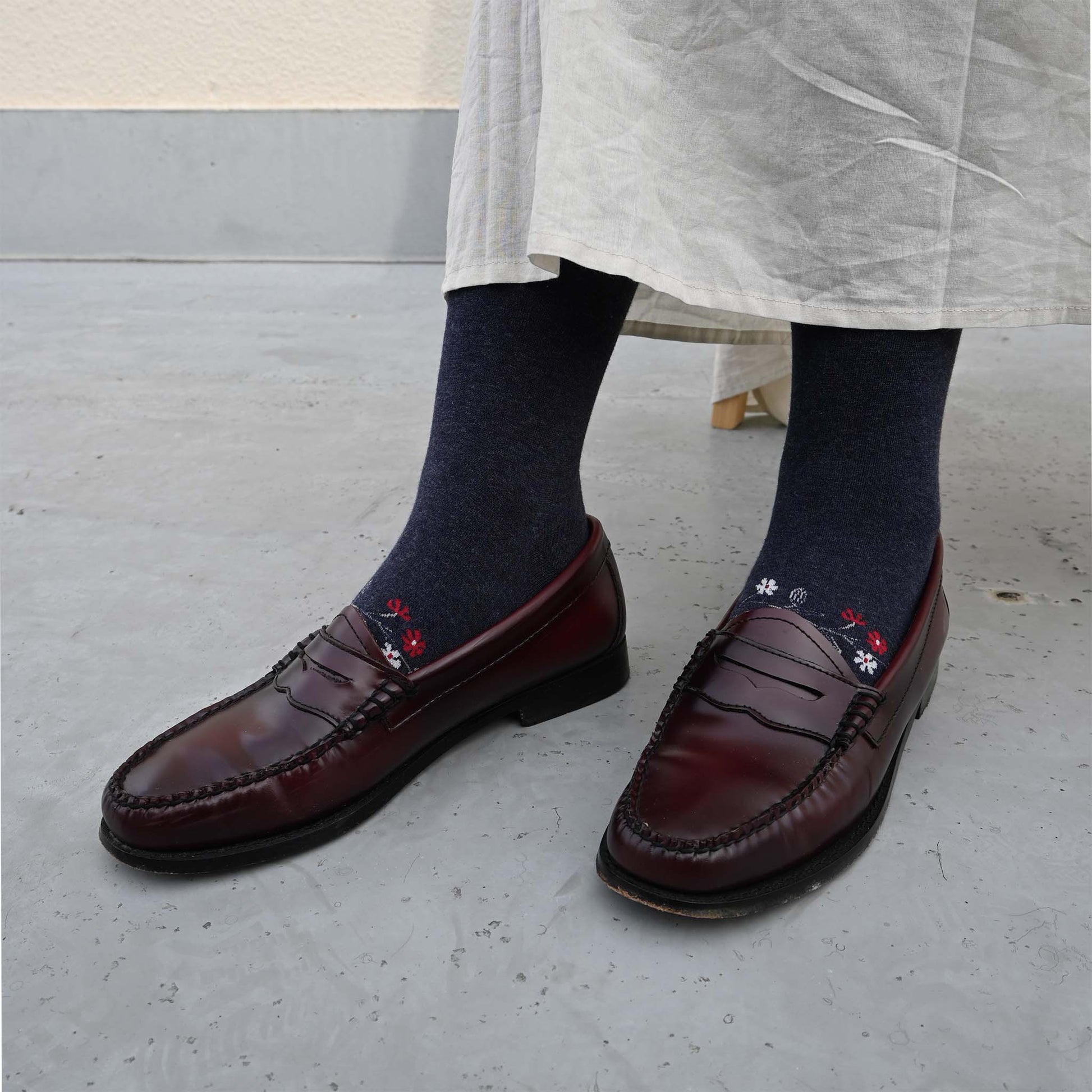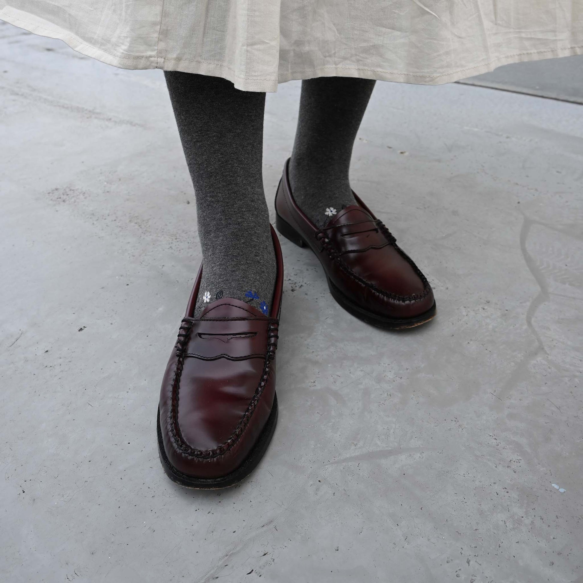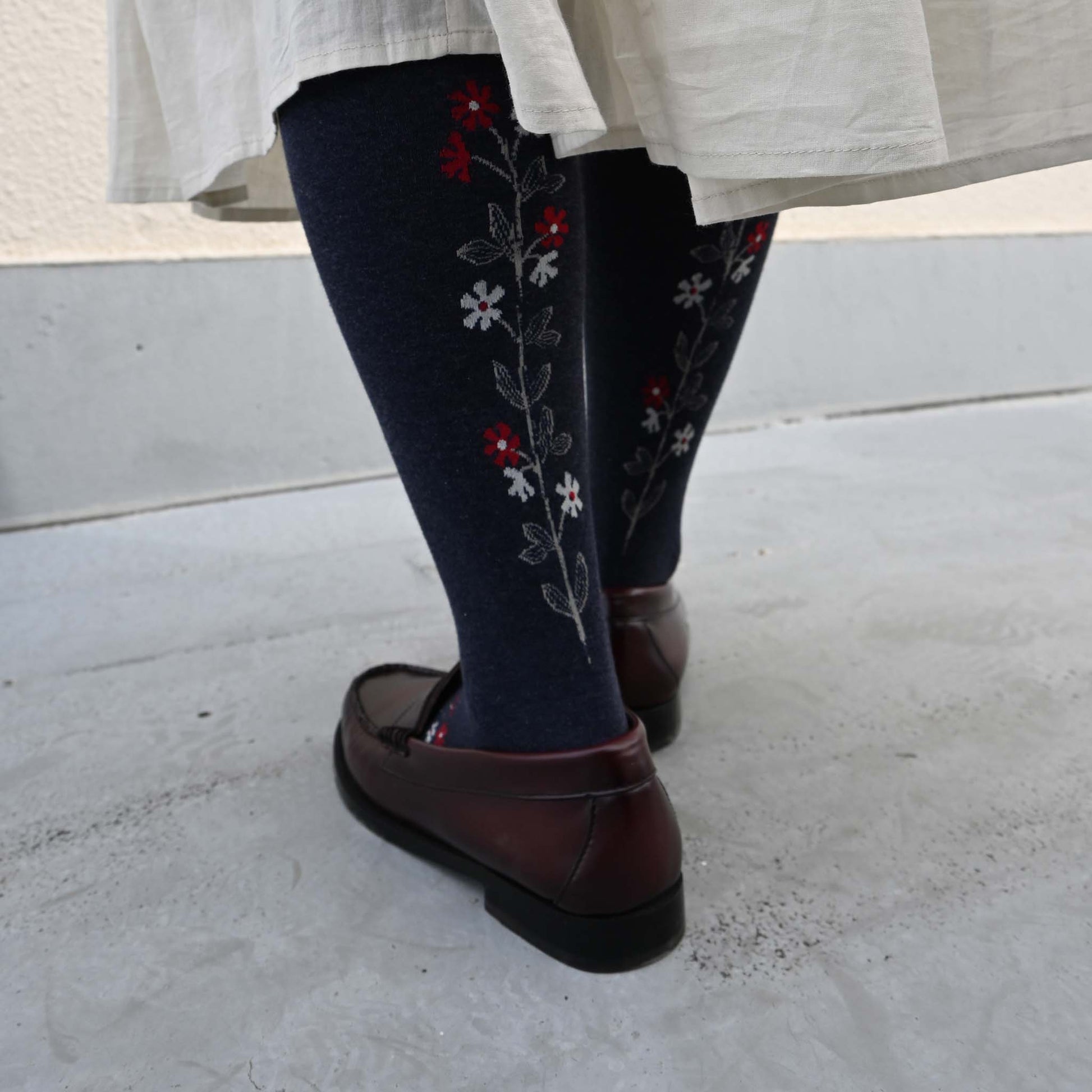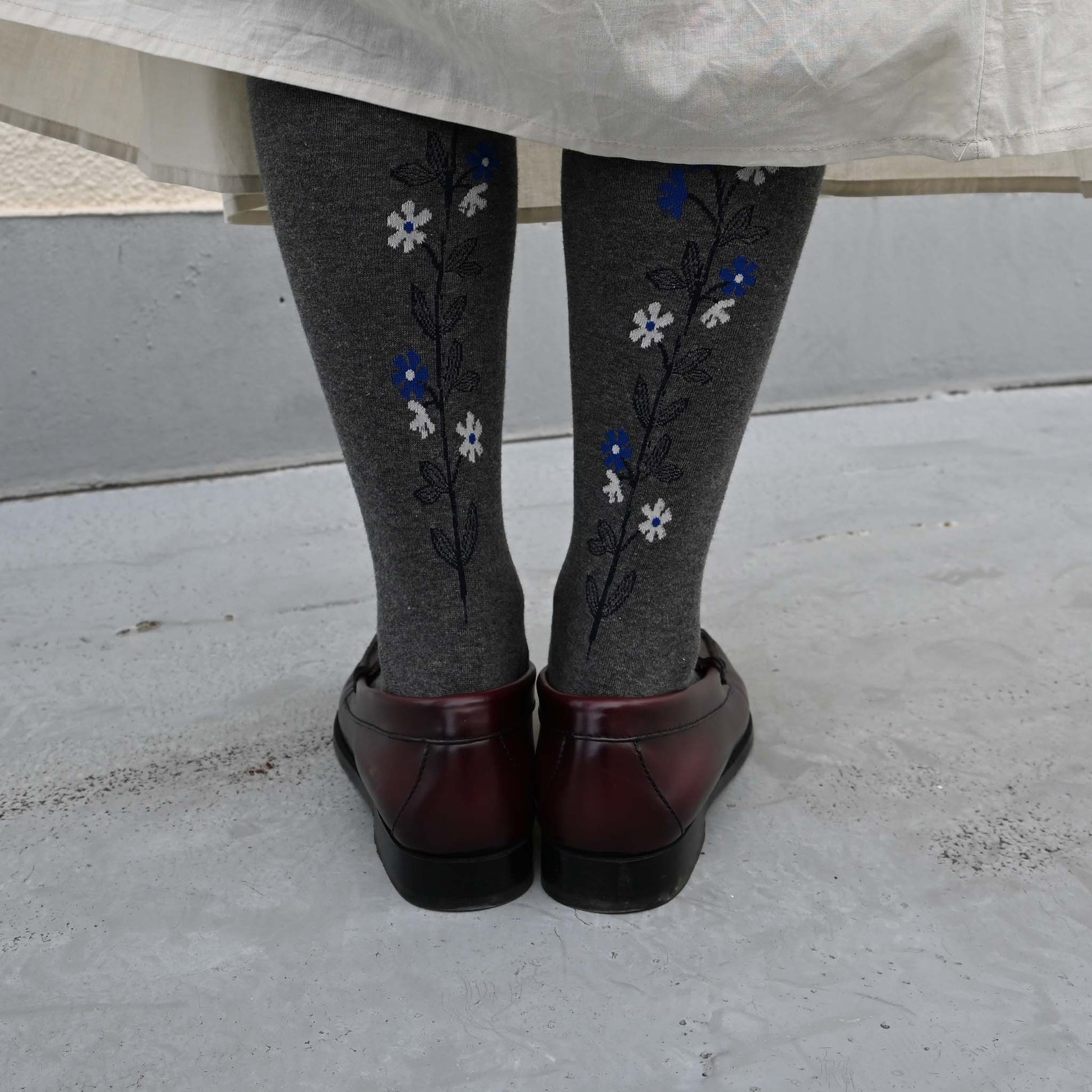 バックサイドに描かれた小花のデザインが愛らしくも大人っぽいタイツです。