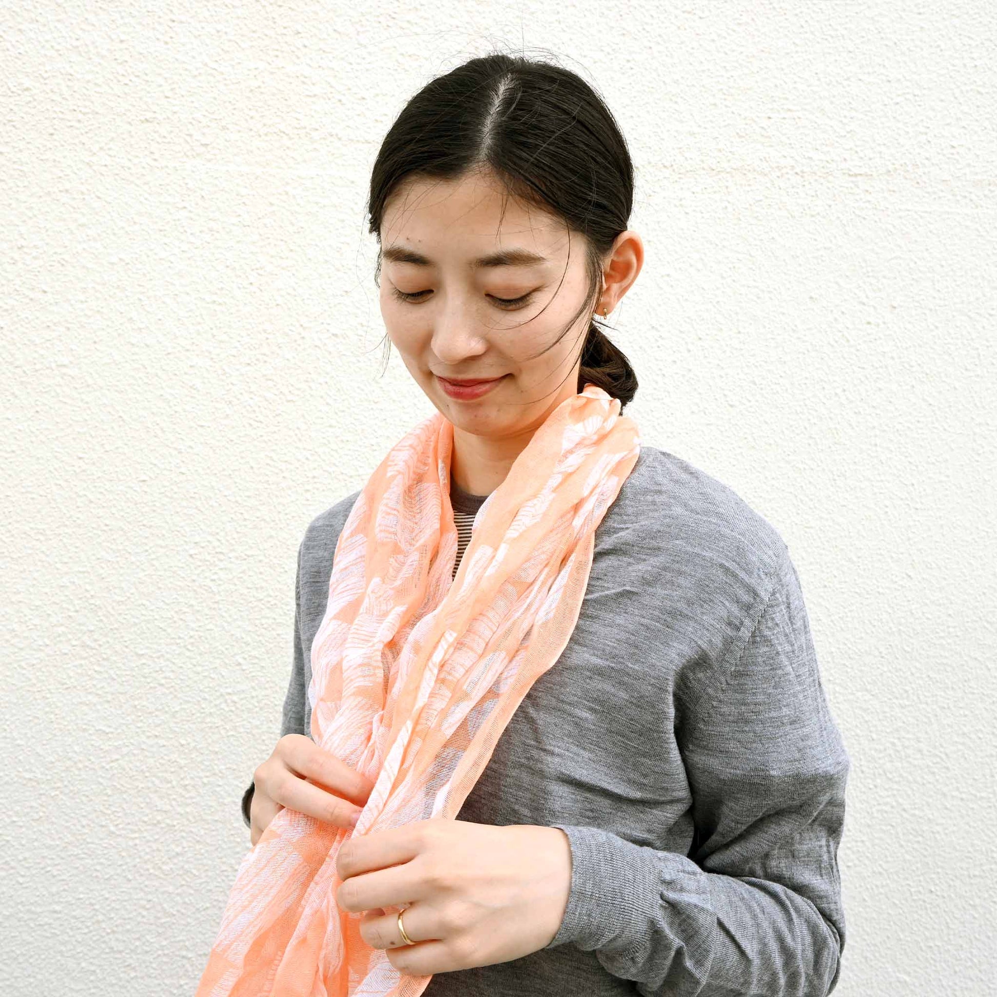 顔色をパッと明るく、リネンのシャリ感とコットンのやわらかさがちょうどいいストールです。